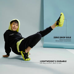 Zero-Drop Barefoot sole keeps heel and toe level for proper alignment.